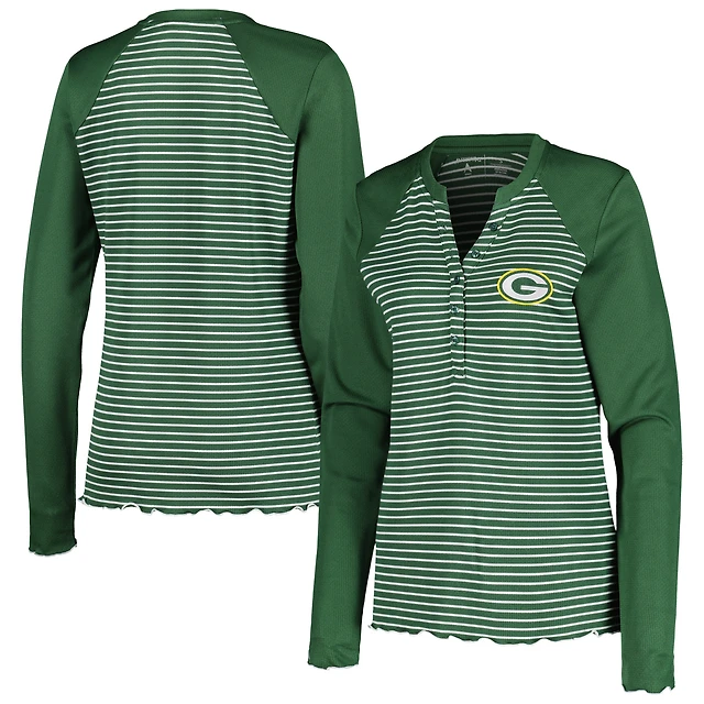 T-shirt Henley à manches longues gaufré Maverick des Packers de Green Bay pour femme, vert Antigua