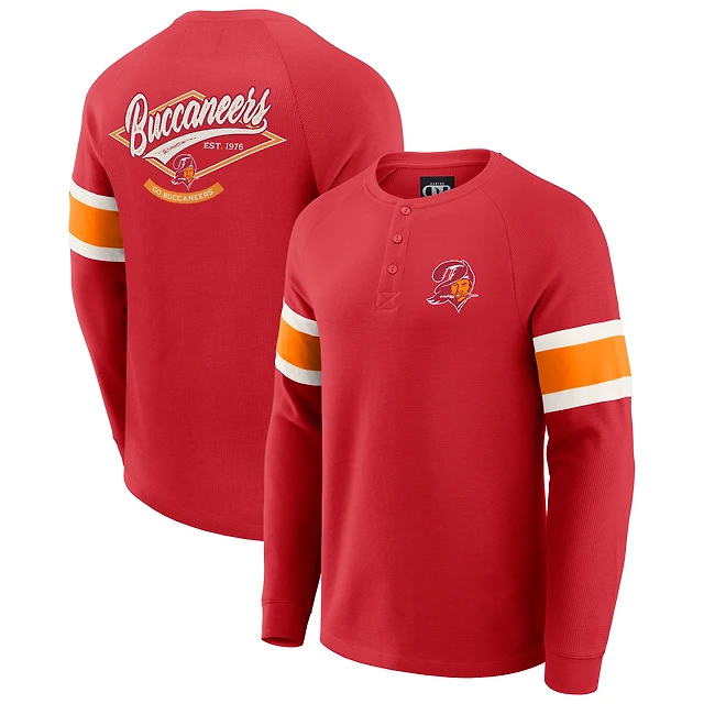 T-shirt Henley à manches longues raglan en tricot gaufré rouge pour homme de la collection Darius Rucker par Fanatics des Buccaneers Tampa Bay