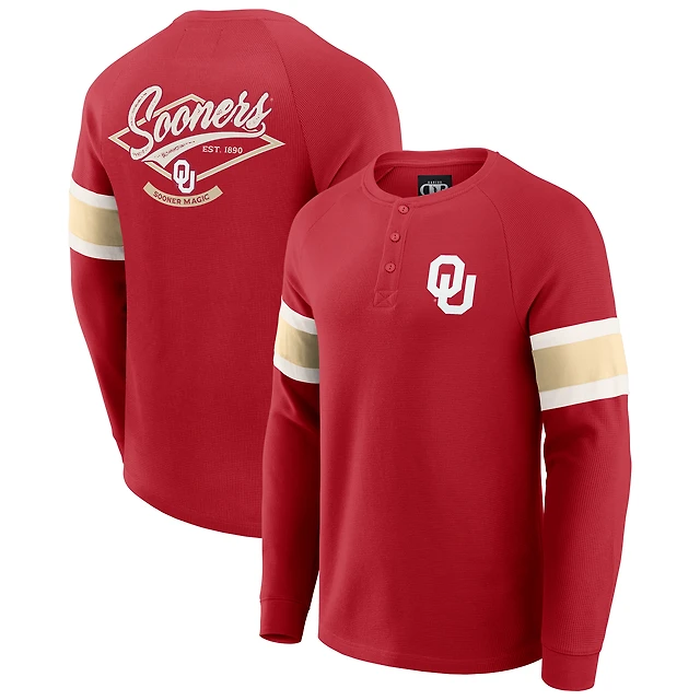 T-shirt Henley à manches longues raglan gaufré pour homme Darius Rucker Collection by Fanatics, couleur cramoisie, des Sooners de l'Oklahoma