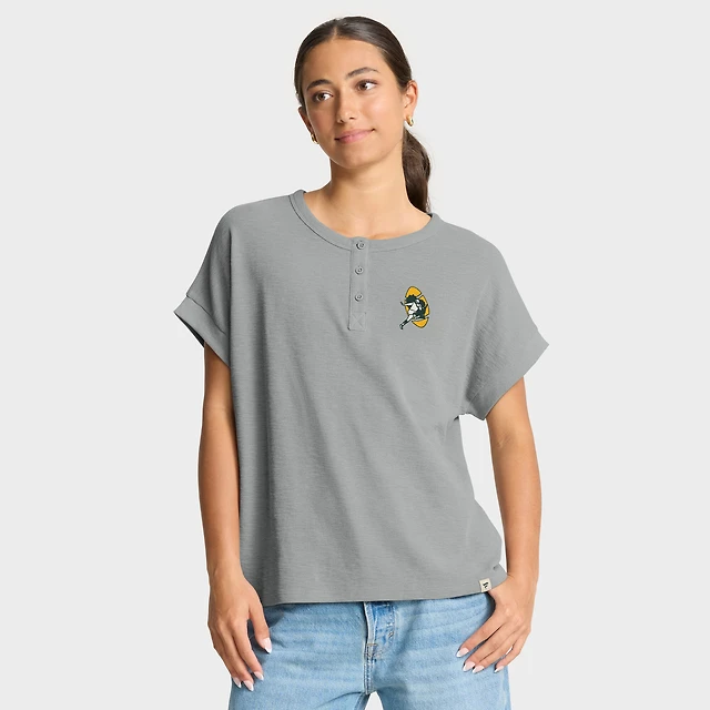 T-shirt Henley surdimensionné de qualité supérieure Fanatics Heather Grey des Green Bay Packers pour femmes