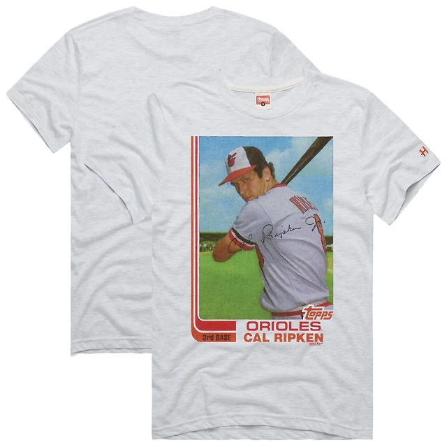 T-shirt hommage pour homme Cal Ripken Jr. Ash Baltimore Orioles 1982 Topps Baseball Card Player