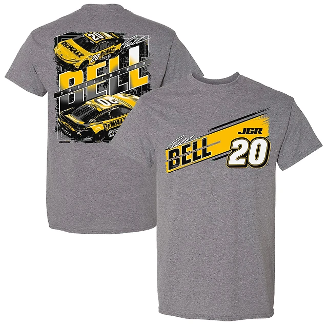 T-shirt homme gris chiné de la collection Joe Gibbs Racing Team, Christopher Bell, DeWalt Car