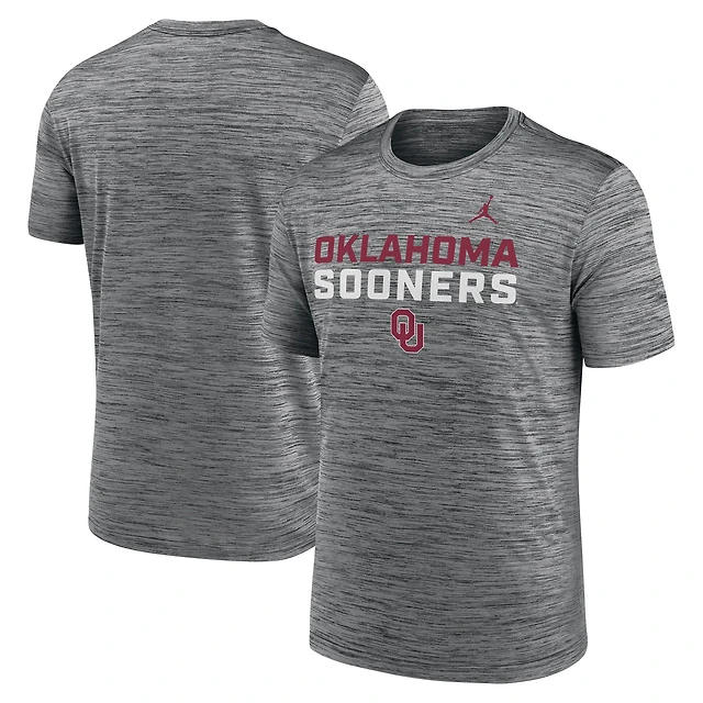 T-shirt Jordan Brand anthracite Oklahoma Sooners Campus Center Stack Velocity Performance pour homme