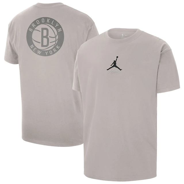 T-shirt Jordan Brand Stone Brooklyn Nets Statement Edition pour homme avec logo épais Jumpman Flight