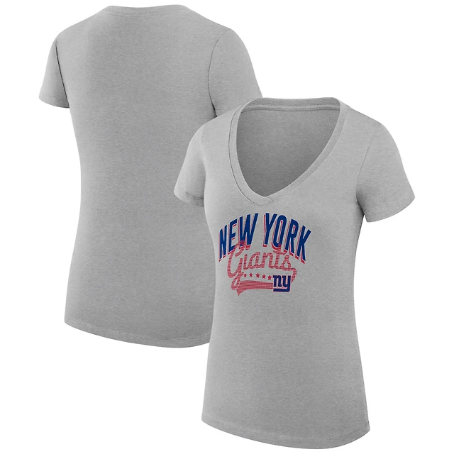 T-shirt léger à col en V et coupe ultra-ajustée G-III 4Her par Carl Banks pour femme, gris chiné, avec logo filigrane des Giants de New York