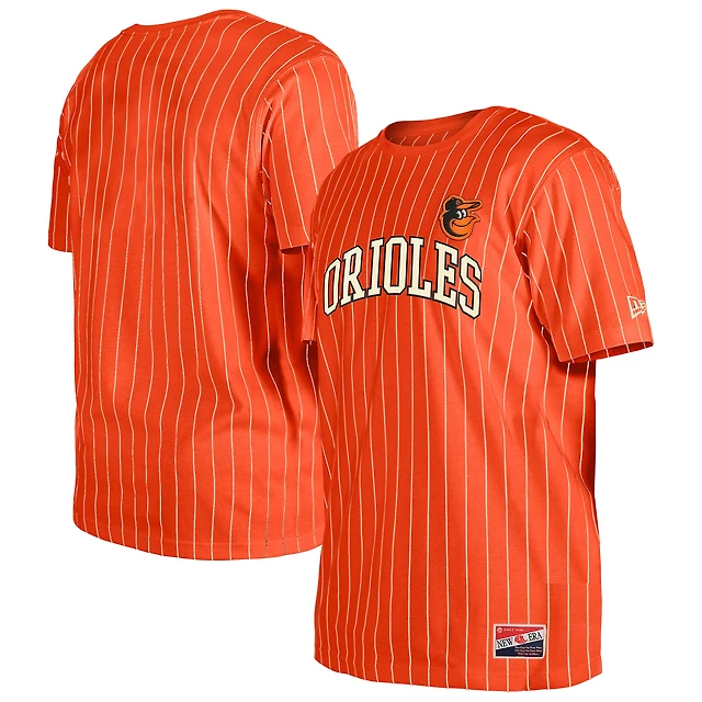 T-shirt New Era orange à fines rayures pour homme des Baltimore Orioles