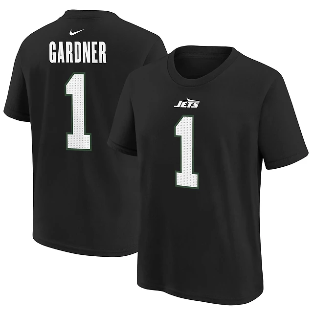 T-shirt Nike Ahmad Sauce Gardner pour jeune, noir, nom et numéro du joueur des Jets de New York