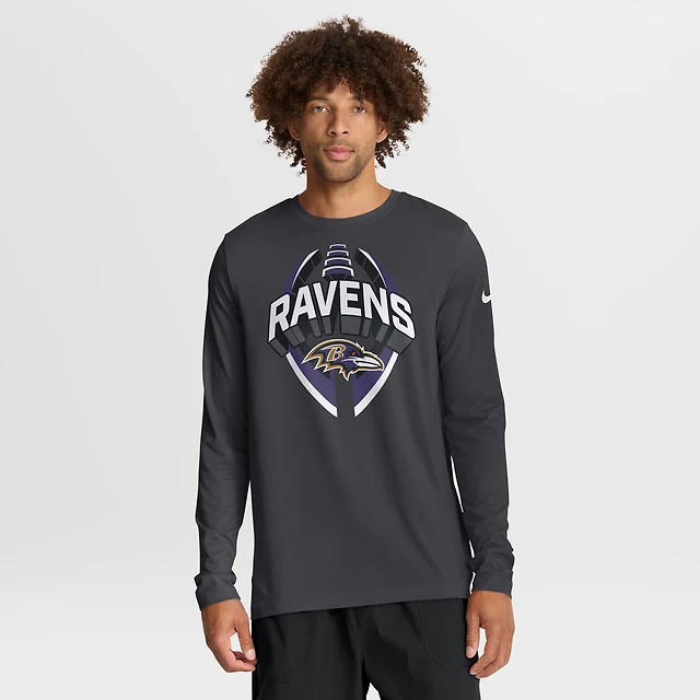 T-shirt Nike anthracite à manches longues pour homme Baltimore Ravens Primetime Legend Icon Performance