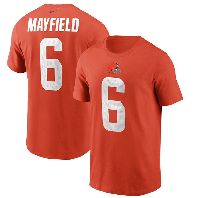 T-shirt Nike Baker Mayfield orange Cleveland Browns avec nom et numéro pour homme