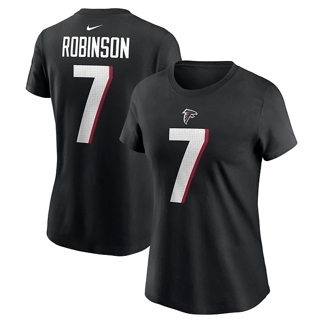 T-shirt Nike Bijan Robinson pour femme avec nom et numéro de joueur des Falcons d'Atlanta noir