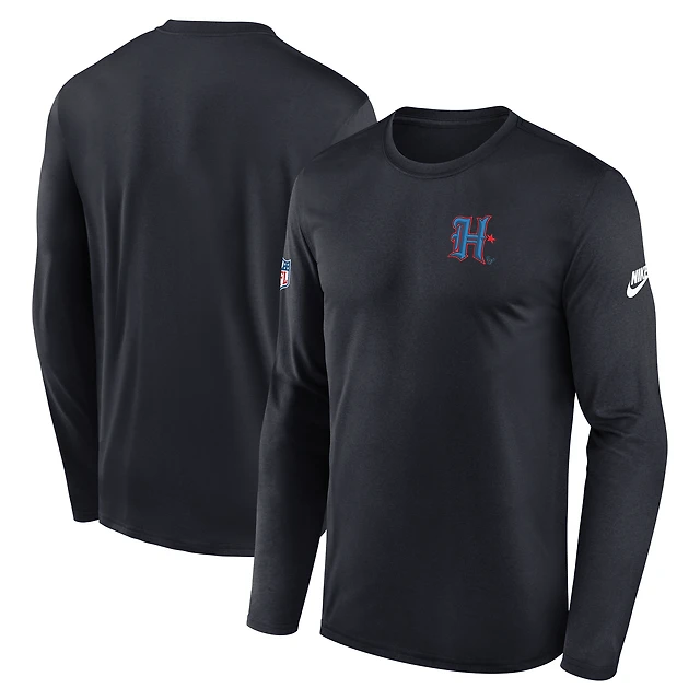 T-shirt Nike bleu marine à manches longues et petit logo Dri-FIT des Houston Texans pour homme