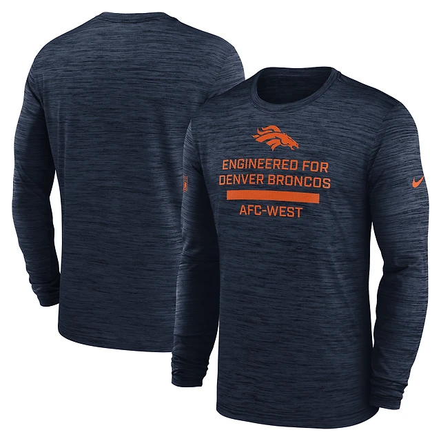 T-shirt Nike bleu marine Denver Broncos Sideline Velocity Performance à manches longues pour homme