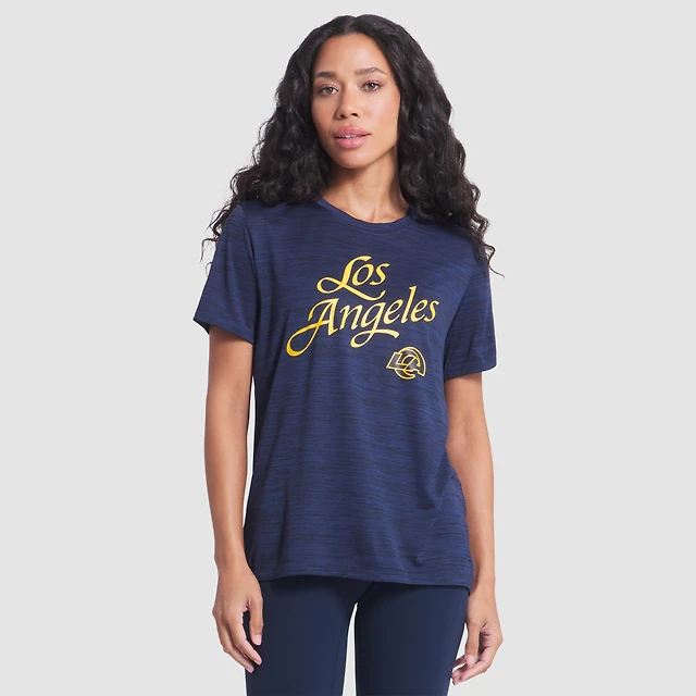 T-shirt Nike bleu nuit pour femme Los Angeles Rams 2025 Rivalries Collection Sideline Velocity Dri-FIT
