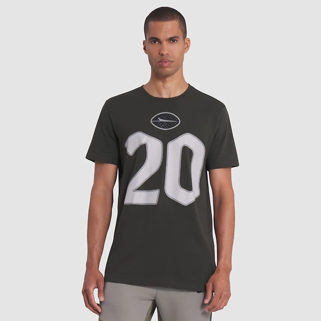 T-shirt Nike Breece Hall Gotham Green pour homme, collection Rivalités 2025 des New York Jets, avec nom et numéro de joueur