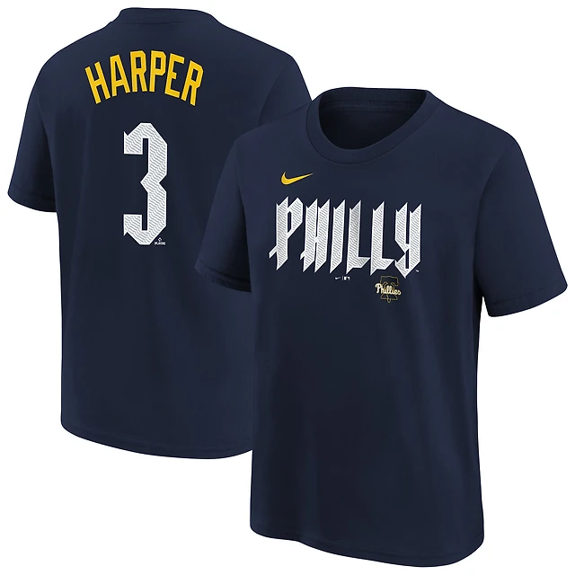 T-shirt Nike Bryce Harper pour jeunes des Phillies de Philadelphie Fuse City Connect avec nom et numéro, bleu marine