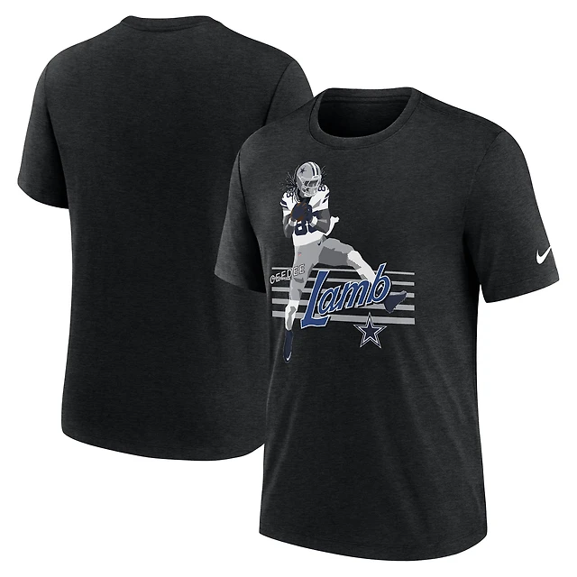 T-shirt Nike CeeDee Lamb pour homme, noir chiné, motif joueur des Cowboys de Dallas