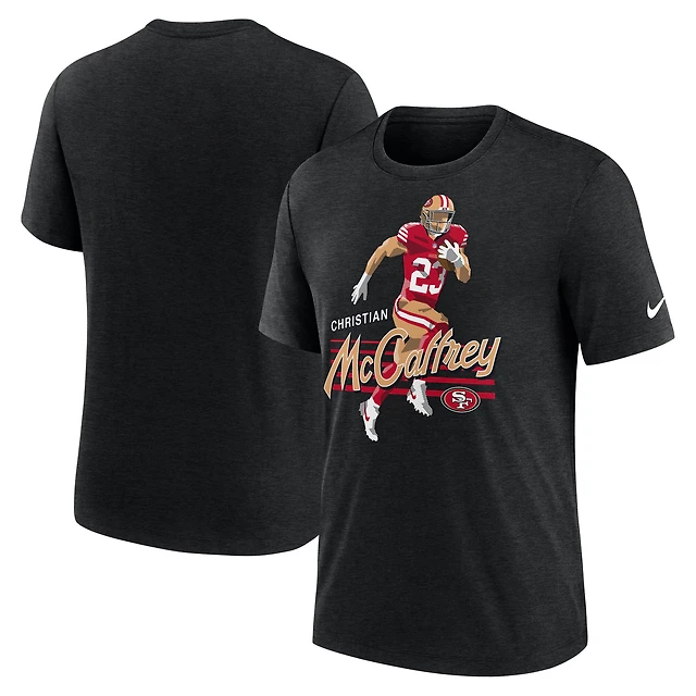T-shirt Nike Christian McCaffrey pour homme, noir chiné, motif joueur des 49ers de San Francisco