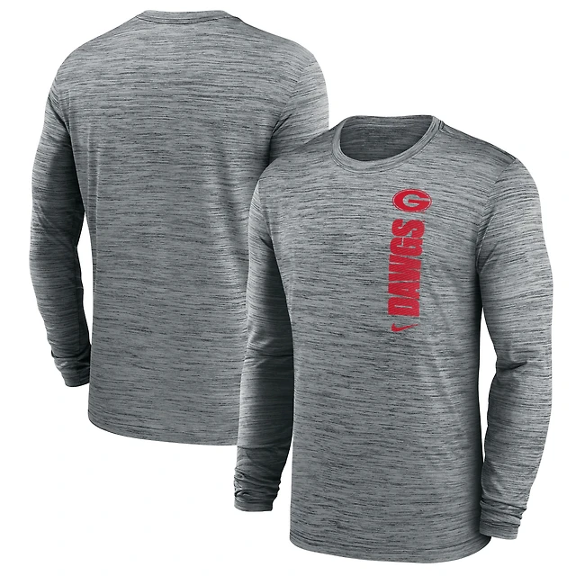 T-shirt Nike gris à manches longues Georgia Bulldogs 2024 Sideline Velocity Dri-FIT pour homme