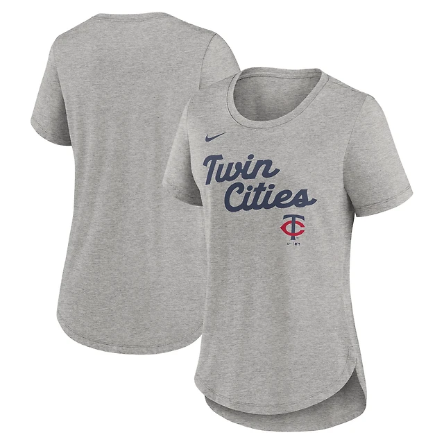 T-shirt Nike gris chiné pour femme avec inscription Tri-Blend des Minnesota Twins