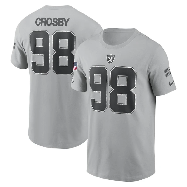 T-shirt Nike Maxx Crosby pour homme, gris, Las Vegas Raiders 2024 Salute To Service, nom et numéro
