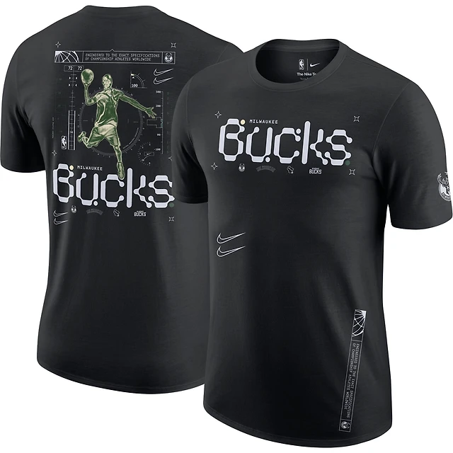 T-shirt Nike Milwaukee Bucks Courtside Air Traffic Control Max90 pour homme - Noir