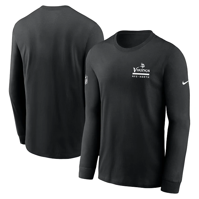 T-shirt Nike noir à manches longues Dri-FIT pour homme, motif Minnesota Vikings