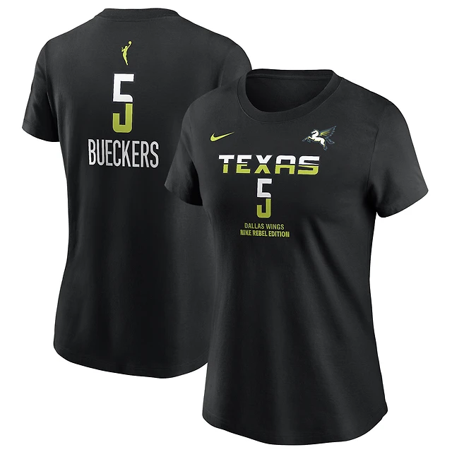 T-shirt Nike Paige Bueckers noir pour femme, Dallas Wings, édition Rebel Draft WNBA 2025, avec nom et numéro