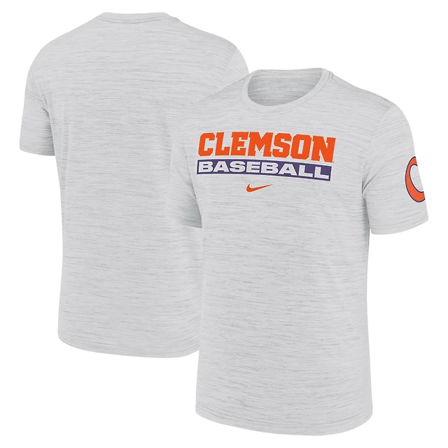 T-shirt Nike pour homme avec logo de baseball Velocity Stack Performance Ash Clemson Tigers