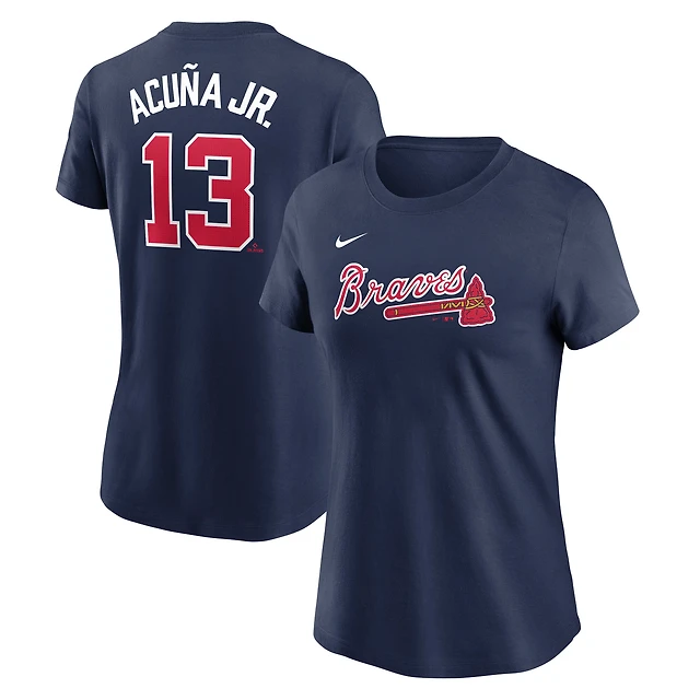 T-shirt Nike Ronald Acuña Jr. bleu marine pour femme avec nom et numéro Fuse des Atlanta Braves