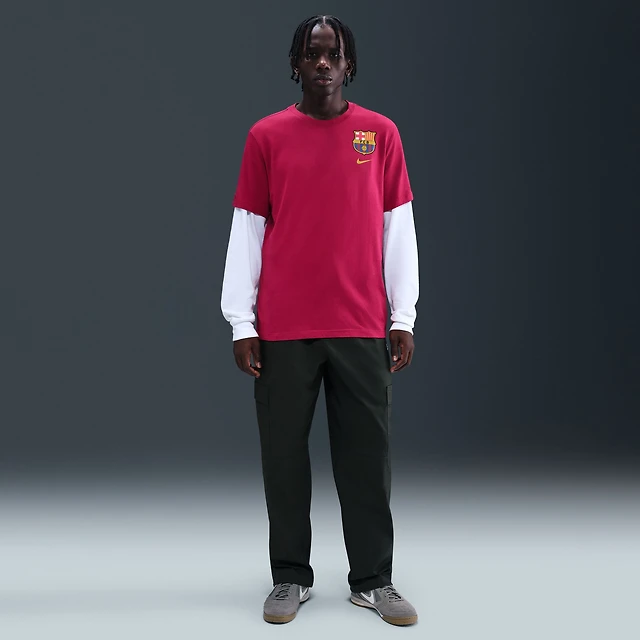 T-shirt Nike rouge avec écusson du FC Barcelone pour homme