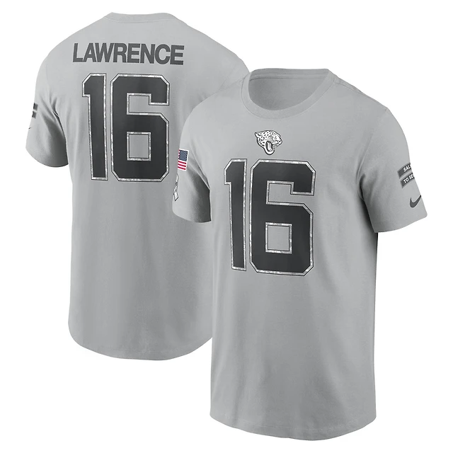 T-shirt Nike Trevor Lawrence pour homme, gris, Jacksonville Jaguars 2024 Salute To Service, nom et numéro