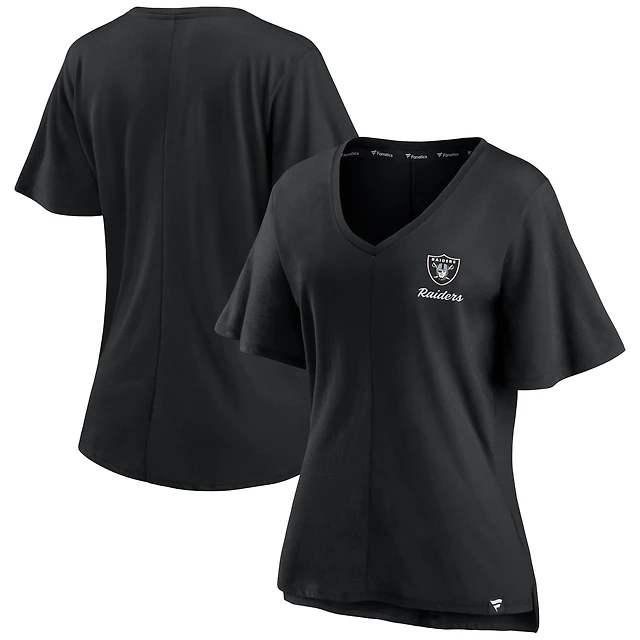 T-shirt noir à col en V Fanatics pour femmes des Raiders de Las Vegas Southpaw Flutter
