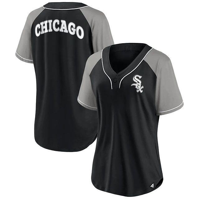 T-shirt noir à col en V Fanatics pour femmes des White Sox de Chicago Ultimate Style Raglan