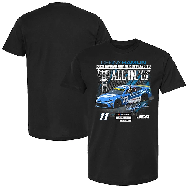 T-shirt noir à damier pour homme, motif sport, Denny Hamlin, Progressive Car Playoff