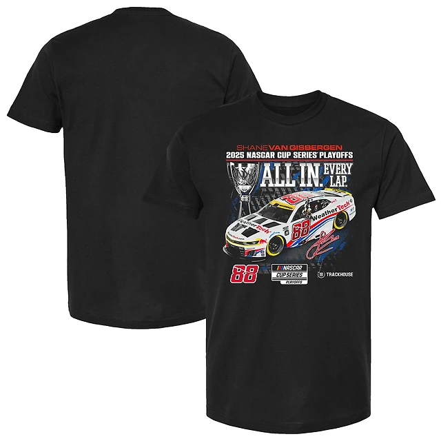 T-shirt noir à damier pour homme, Shane van Gisbergen, Series éliminatoires NASCAR Cup 2025, WeatherTech All