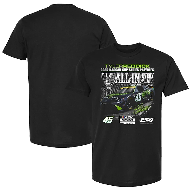 T-shirt noir à damier pour homme, Tyler Reddick, Series éliminatoires NASCAR Cup 2025, The Beast