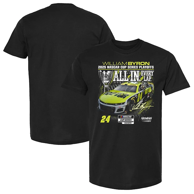 T-shirt noir à damier pour homme William Byron, éliminatoires de la NASCAR Cup Series 2025, Raptor All