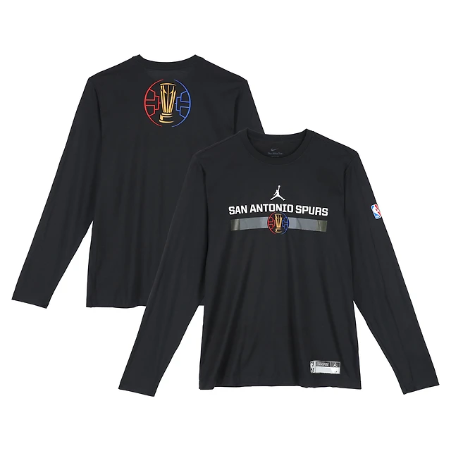 T-shirt noir à manches longues de la Coupe NBA, porté par Stephon Castle, San Antonio Spurs, saison 2024-25 - Taille XL