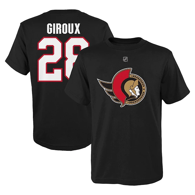 T-shirt noir avec nom et numéro des Sénateurs d'Ottawa Claude Giroux pour jeunes