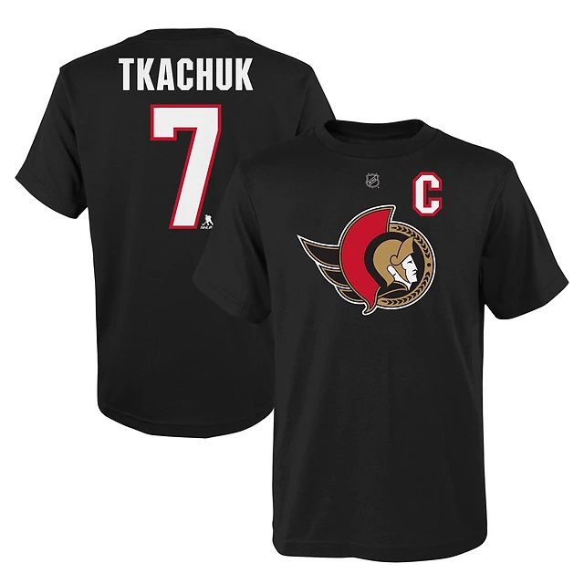 T-shirt noir avec nom et numéro du capitaine des Sénateurs d'Ottawa Brady Tkachuk pour jeunes