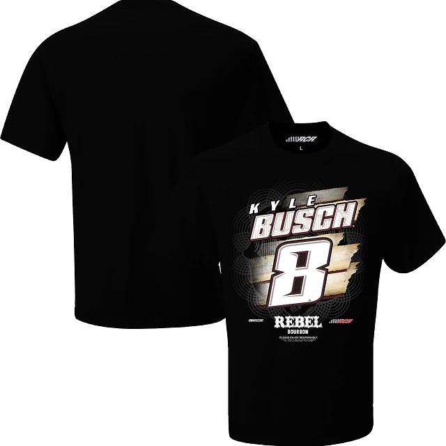 T-shirt noir Kyle Busch Rebel Bourbon Front Runner de la collection Richard Childress Racing Team pour hommes