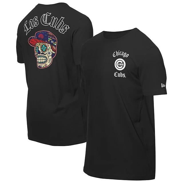 T-shirt noir New Era pour homme avec motif Sugar Skulls des Chicago Cubs