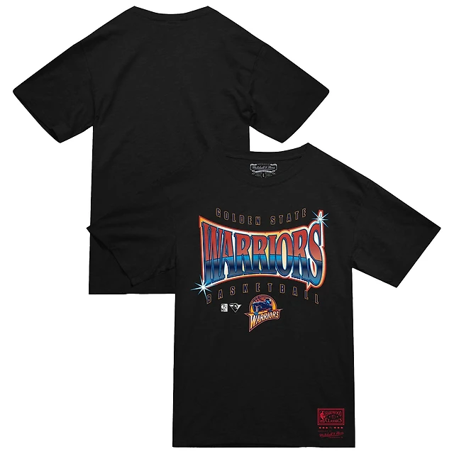 T-shirt noir phosphorescent pour homme Mitchell & Ness Golden State Warriors Worldwide Collection