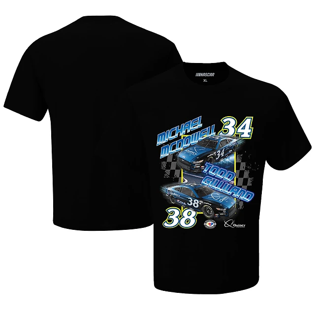 T-shirt noir Todd Gilliland & Michael McDowell Quincy Compressor pour homme avec drapeau à damier
