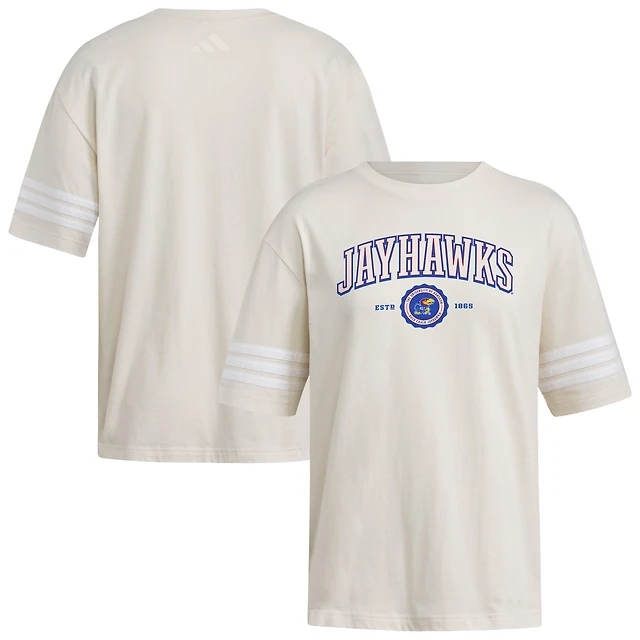 T-shirt oversize à trois bandes tendance crème adidas Kansas Jayhawks pour femme