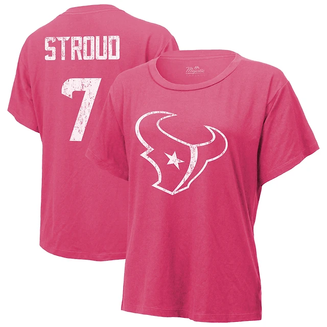 T-shirt pour femme Majestic Threads C.J. Stroud Pink Houston Texans avec nom et numéro