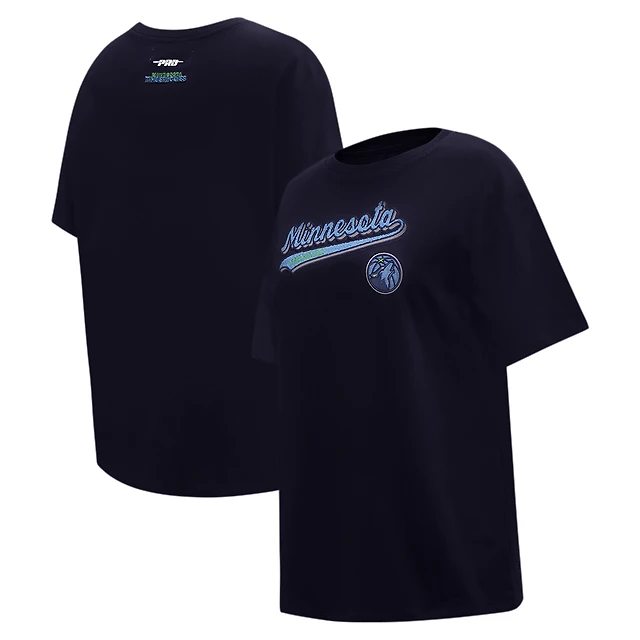 T-shirt Pro Standard bleu marine Minnesota Timberwolves Script Boyfriend pour femmes