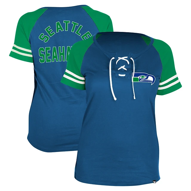 T-shirt raglan à lacets New Era Royal Seattle Seahawks Throwback pour femme