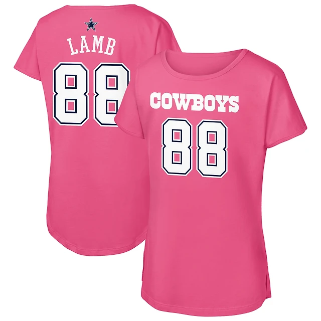 T-shirt rose pour jeunes filles CeeDee Lamb avec nom et numéro de joueur des Cowboys Dallas