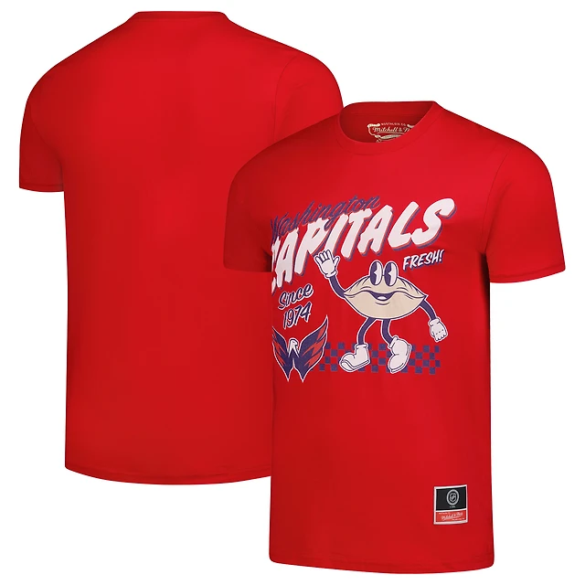 T-shirt rouge pour homme Mitchell & Ness avec motif de nourriture locale des Washington Capitals